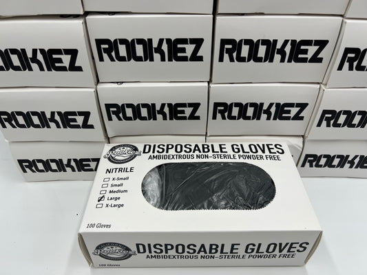 Rookiez Disposable Black 5-6mil Nitrile Gloves Sizes S-XL Boxes
